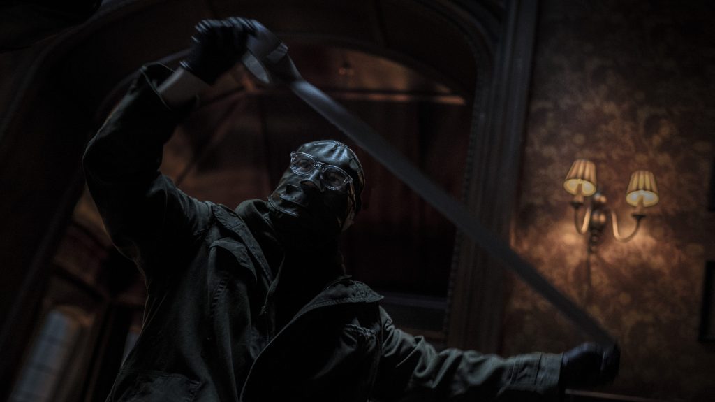 Pero volviendo a The Batman, la identificación entre héroe y villano es constante, hasta el punto en que ambos se convierten en antihéroes. Como ya se ha comentado, ambos están motivados por la venganza, pero también por hacer de Gotham un sitio menos corrupto. Ambos son personas con una inteligencia superior (se presupone), asociales e incapaces de comunicarse. Ambos son huérfanos que han crecido desarrollando un trauma, fruto de la negación violenta de su futuro (la introducción del tercer huérfano, el hijo del alcalde que ocupa la primera secuencia de la cinta, es fundamental para comprender las diferencias entre Batman y Enigma: uno quiere que Gotham viva su trauma, el otro librarla de él) y responden a eso de forma violenta. Son niños heridos. A ambos, como veremos, se les asocia una iconografía religiosa y ambos personajes están marcados por sus máscaras (en el caso de Enigma, tanto su traje como las redes sociales funcionan como tal). Ambos usan las sombras para «acechar a sus víctimas» y ambos reinan a través del terror.