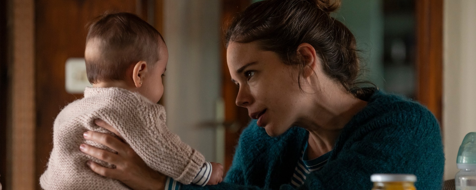 No descubro nada a nadie (o quizá sí) cuando digo que la nana que da título a la cinta es una canción que sirve para que los bebés aprendan a través de la imitación de los gestos de sus madres. Por eso es brillante la estructura espejo que crea Alauda Ruíz de Azúa: todo lo que Amaia (Laia Costa) sufre cuidando a la pequeña Ione tiene un eco en la segunda parte, donde la joven hará lo propio con su madre, Begoña (Susi Sánchez). La instalación de la cuna, los puntos, el primer baño, no dormir,… Un concepto que culmina en un precioso plano de conjunto enmarcado donde, ya casi al final de la cinta, la abuela le canta la nana a su nieta.