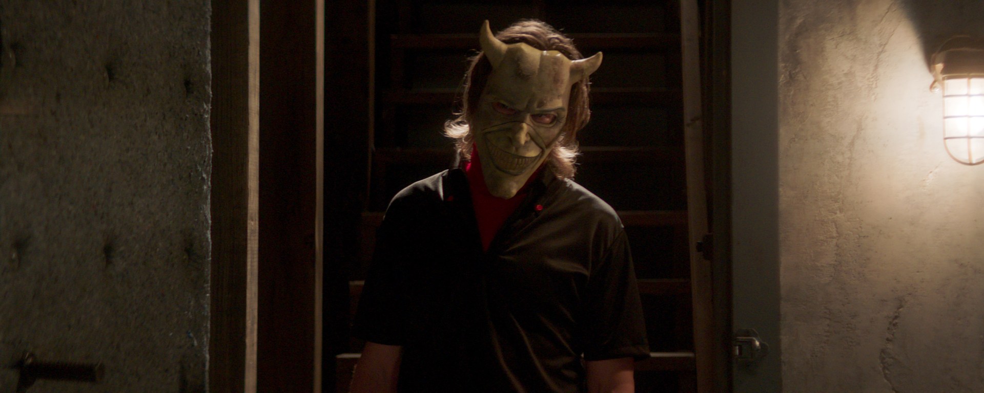 La vuelta al terror de Scott Derrickson, tras su aventura en Marvel, narra ese mismo empoderamiento de la infancia contra el mundo adulto, pero se sitúa después del trauma. Los personajes ya viven en el desencanto, ya han perdido la inocencia, y deberán rebelarse contra ese mundo. «Si no juegas, no puede ganar» se dice en la cinta, referenciando la dinámica dominador-dominado que parece regir el mundo. De esta forma, se erige la dialéctica entre el protagonista, ayudado por el resto de niños de la película, contra El Captor, que se erige como un personaje que trasciende lo humano. Ethan Hawke y Scott Derrickson crean un papel sin dar explicaciones de quién es ni sus motivaciones —no se busca hacer pedagogía de la psicopatía ni alcanzar lo sublime a través de lo macabro—, aproximándose a lo sobrenatural por encima del asesino realista. Lo más cercano a una explicación es la relación que mantiene El Captor con el teléfono negro, que parece esconder un pasado traumático y no muy distinto al de Finney (una vía interesante para la interpretación es observar la película desde el punto de vista de las nuevas masculinidades y la ruptura de ciertos prejuicios heteropatriarcales). Estamos ante la representación del Mal en estado puro —idea apoyada en la propia actuación, escalofriante, en la puesta en escena que acentúa la incertidumbre, ¡y en las máscaras!—, pero un Mal que sangra, que duerme y que falla. Un Mal humano; o lo humano del Mal.