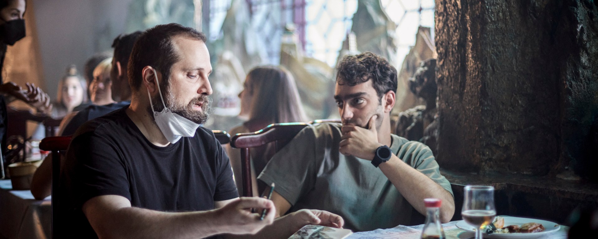 C. V.: Sí, toda la parte central era lo primero que tenía. No llegué a describirlo nunca, era más una especie de estructura, de idea. Y cuando apareció toda la parte de los videojuegos, fue cuando yo sentí toda su profesión, algo que conectaba el principio y el final. Es verdad que a mitad de la película no se mencionan tanto el mundo los videojuegos, se centra más en la relación entre los dos personajes. Pero sí me servían para introducir al personaje de Diana, para que Diana al final de la película tuviese esa reacción y para ese desenlace. La escritura surge de una manera más orgánica: vas escribiendo, dejas reposar el guión, necesitas resolver cuestiones de guión, cómo avanza la película, qué elementos has sembrado a lo largo de la película. Sin spoilers, pero el tema de las pastillas y que él tuviese ansiedad, pues esas mismas pastillas, al final, tenían una utilidad. Entonces es un proceso de escritura que, al final, son hacer una o dos versiones, ir repasando y hay cosas que se van puliendo y otras van cobrando sentido.