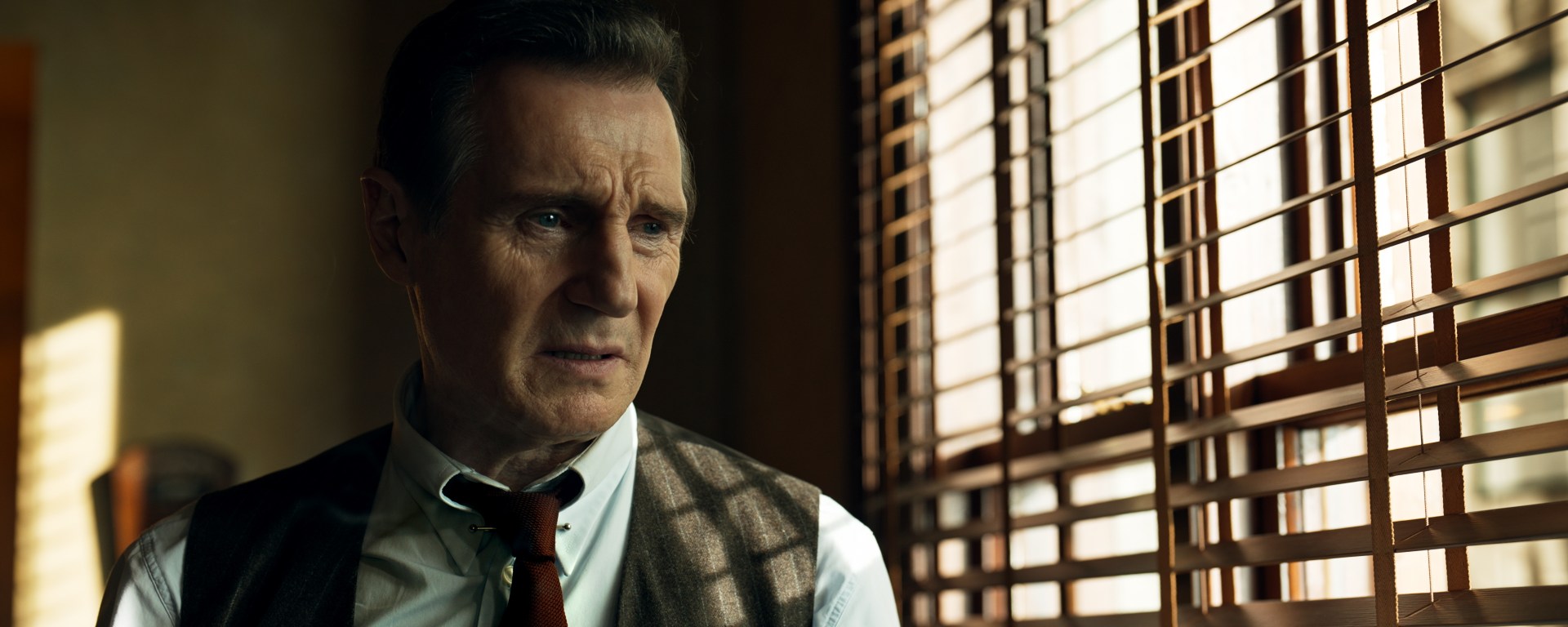 Philip Marlowe es un detective creado por Raymond Chandler en 1934 y que dio su salto —de forma oficial, pues cuenta con dos adaptaciones previas con un trasunto con otro nombre— a la pantalla en Historia de un detective (Edward Dmytrick, 1945), aunque su caracterización más famosa, en rostro de Humphrey Bogart, llegó un año después con El sueño eterno de Howard Hawks. Luego de la muerte de Chandler, sus herederos han continuado autorizando, con mayor o menor regularidad, la publicación de novelas y relatos cortos, entre los que se encuentra La rubia de los ojos negros de Benjamin Black, alias para el género negro del escritor John Banville. Algo parecido ocurre con el cine. Tras los años 40, la gran década para Marlowe, el detective solo volvió a la gran pantalla en los años 70, con Robert Mitchum prestando su rostro o Robert Altman tras alguna de las cámaras, y, ahora, de mano de Liam Neeson y Neil Jordan y Will Monahan, que adaptan la novela de Banville.