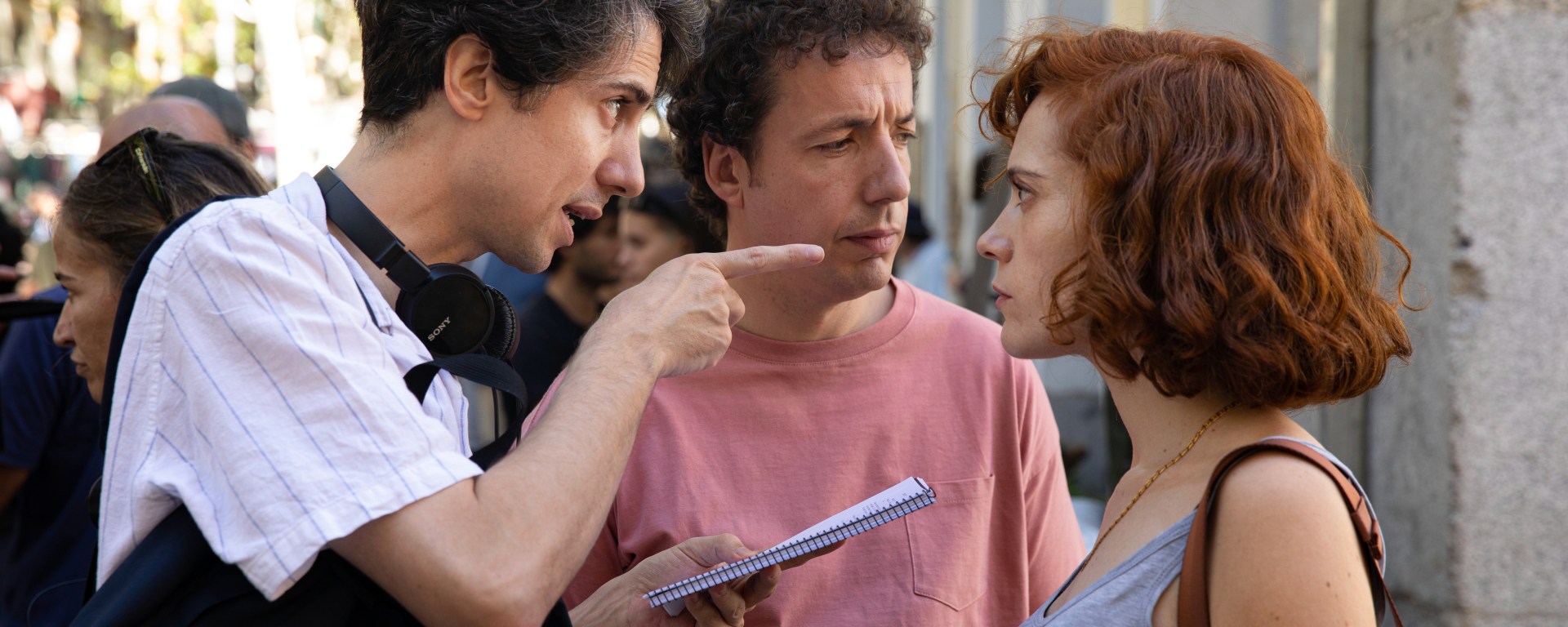 La película es estupenda: muy sencilla y, a la vez, muy complicada. «Es un cine frágil, hay algo ahí, de aparente ligereza que es frágil en su concepción, aunque luego se construya y esté muy bien armado», dice Itsaso Arana. «Y luego, dentro de esa ligereza, en el fondo estamos hablando de personajes que tienen un gran conflicto», añade Vito Sanz. Ellos son Ale y Alex, respectivamente, una pareja que se va a separar y, para celebrarlo, deciden hacer una fiesta con amigos y familiares para celebrarlo. Ellos son Ale y Alex (respectivamente), pero Ale y Alex también son Jonás Trueba. Los tres firman el guion, aunque las aportaciones vienen de «todos. Aunque yo considere que las películas salen a veces de un lugar muy íntimo, pasan por una especie de trituradora con todos ellos, que te van diciendo sí o no, te lanzan ideas, te guían. Así que no solo los actores, hay personas detrás que aportan muchísimo más de lo que a veces me doy cuenta.»